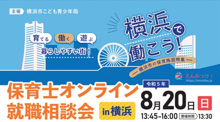 この度、株式会社リンクでは横浜市こども青少年局主催のもと、保育施設への就職を希望する方や保育士を目指している方への「保育士オンライン就職相談会in横浜」を2024年3月16日(土)に開催し、運営を行うこととなりましたのでお知らせします。